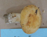 | 23 キツネハツ Russula earlei Peck 同定/幸徳 定点観察会では初記録のキノコ。傘が淡黄土色で表面が粗くささくれるのが特徴である。ただし、湿時はあまりささくれない。 |